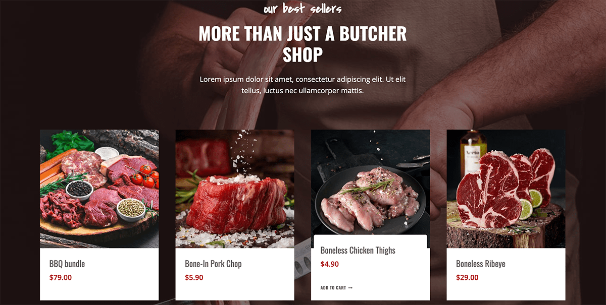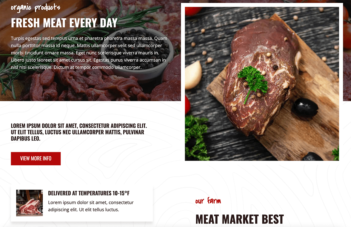 Those with a discerning palate are always looking for a better dining experience, and this niche audience has learned that the best way to find high quality food is to go straight to the source. Farm-to-table experiences are cropping up around the world as more people demand higher quality cuts of fine meats. If your farm is on the cutting edge of this trend, you know your audience. And we’ve created the Butcher Shop Pro Starter Template to so you can showcase your business to this discerning audience in the best possible light. With gorgeous imagery, galleries, and easy to use navigation, Butcher Shop has everything a farm-to-table operation needs to get started selling online. This starter template will automatically install both WooCommerce and Orderable so you’ll be able to schedule local pickup or delivery of the finest cuts of premiere meats to your customers.