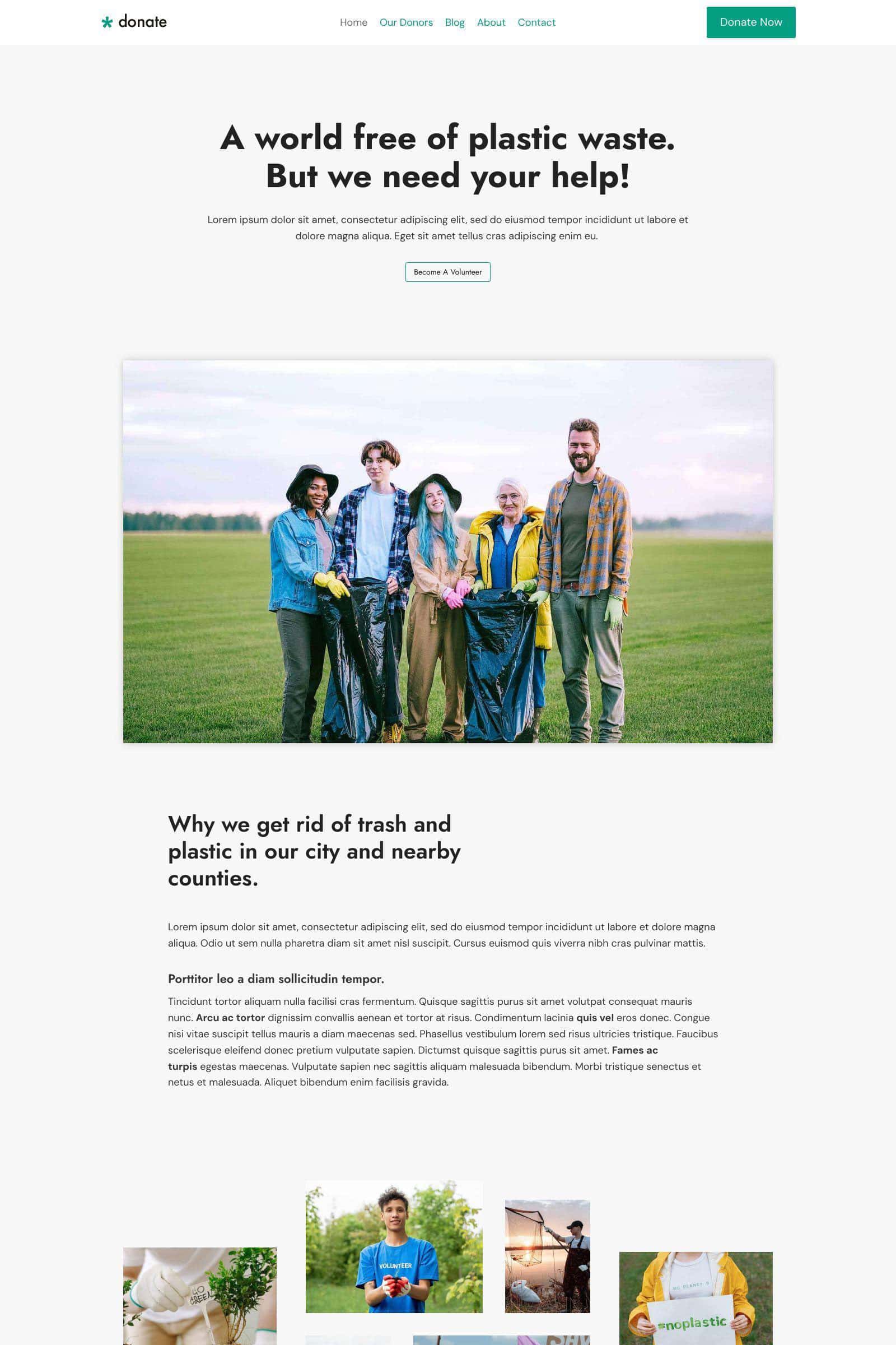 The Donate starter template is set up with GiveWP, making donations a breeze.