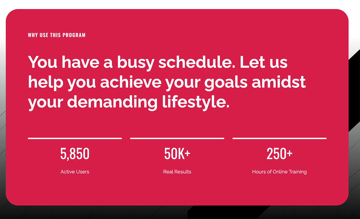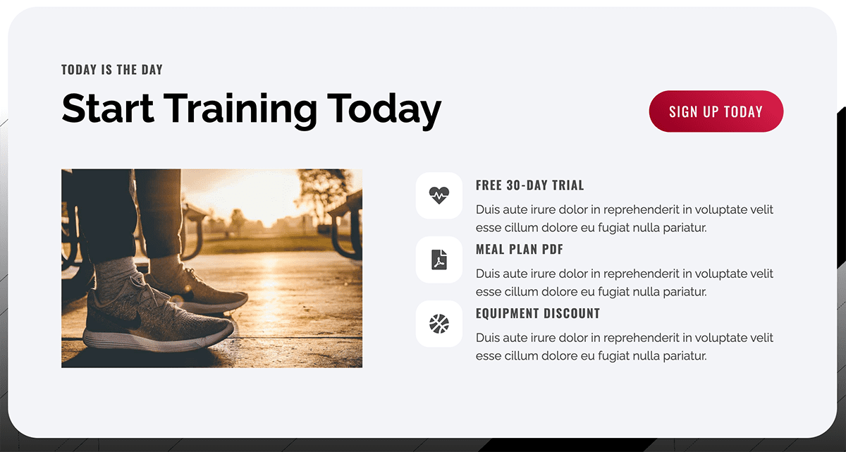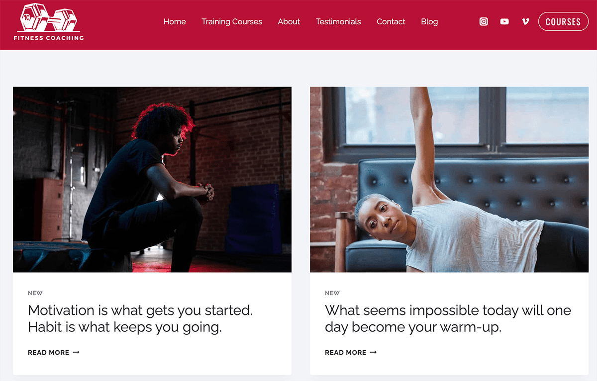 The unique royalty-free imagery in the Fitness Course starter template is everything you need to get started training people in your town or around the world.