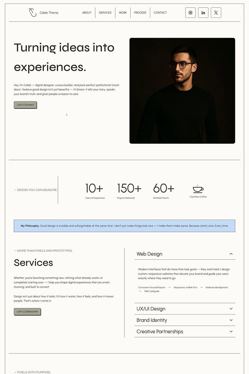 Clean, cinematic design is the perfect canvas to showcase your stories, expertise, and passion.