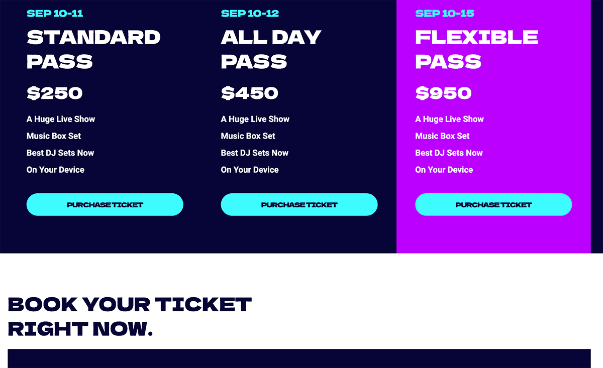 When your fans are ready to cheer your band on, they’re looking for a place to connect with your band online and buy tickets quickly. The Events Calendar powers the UR Band Starter Template ticketing and event listings with this gorgeous starter template.
