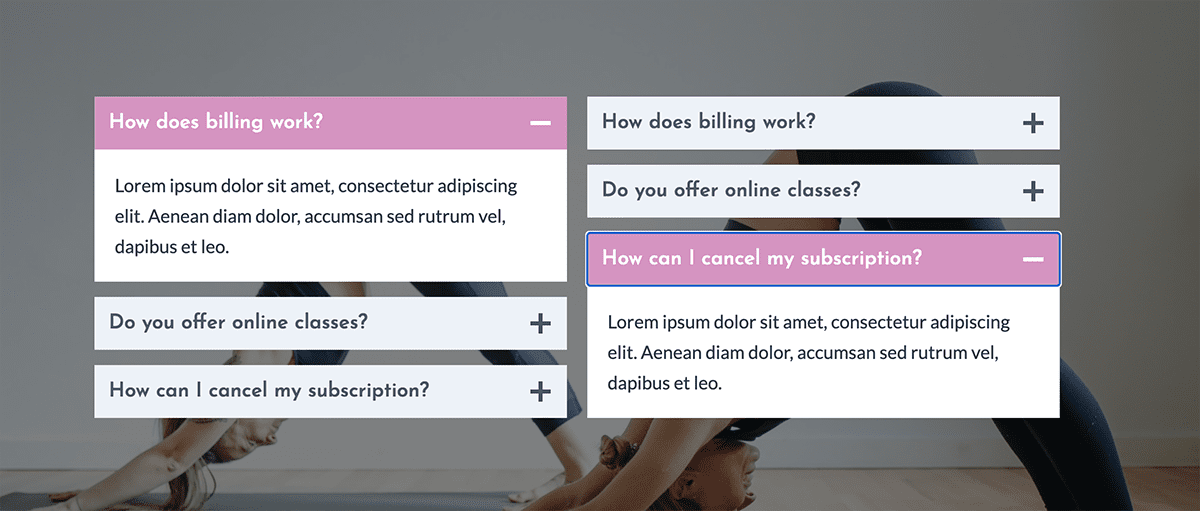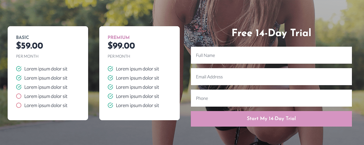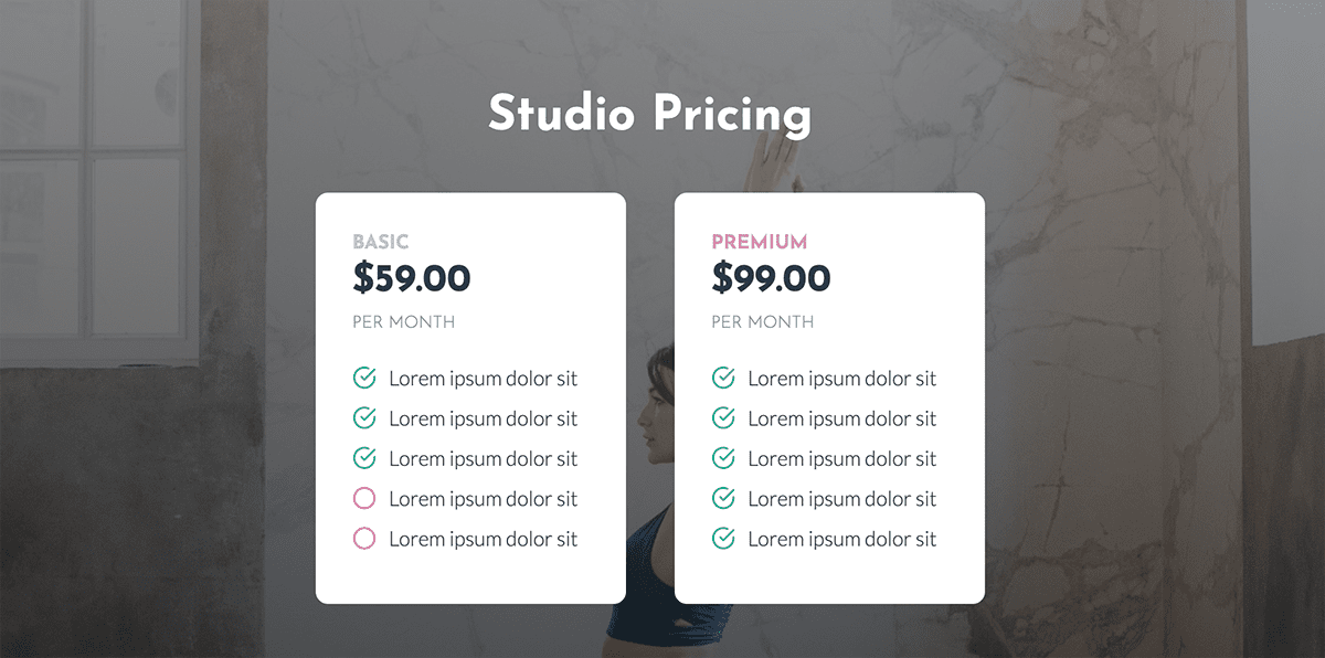 UX research shows that pricing tables with price differentiation helps your customers make a good buying decision. Reuse the pricing table block anywhere on your yoga studio site.